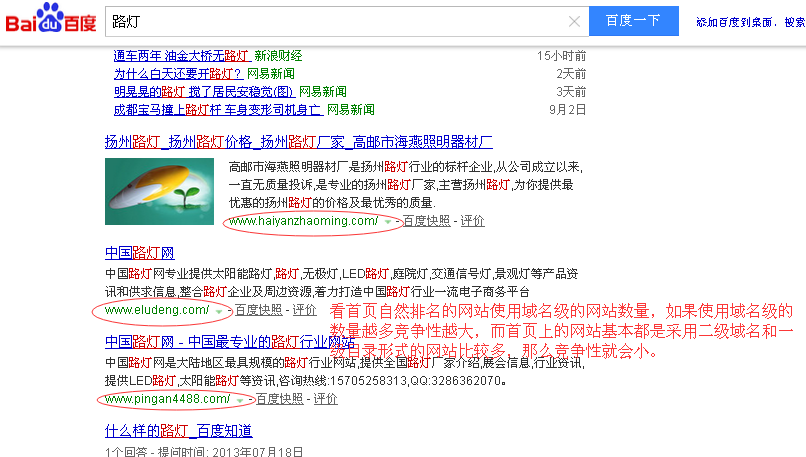 (B)第一页竞争对手普通网站主页不超过5个:属于中等偏小的;