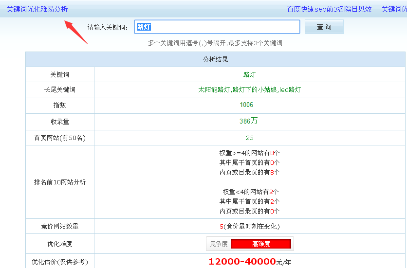 这里还可以使用站长工具里面的关键词竞争性分析工具进行分析下。