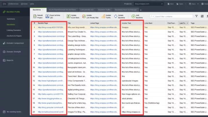 现在我要查看的是 blog.snappa.com 这个页面的所有反向链接(backlink)