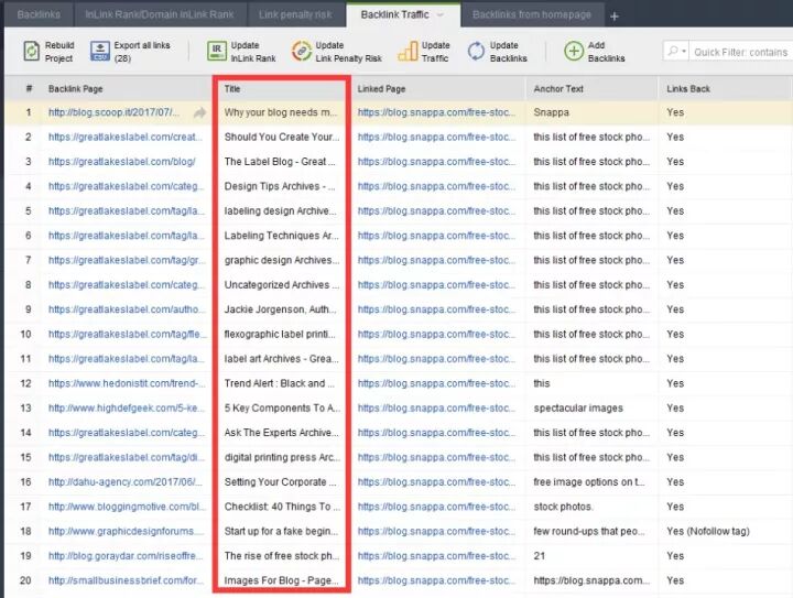然后这个工具还有一个地方是我很喜欢的,就是在 backlink traffic这个地方,我可以非常直接的看到这个外链的标题是什么,这样我就可以直接看他们是否想过。