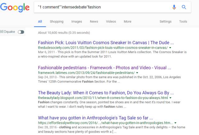 所以这样的搜索语句就是 查找以fashion为关键词的,评论只有一个并且是利用IntenseDebate来搭建的评论系统。